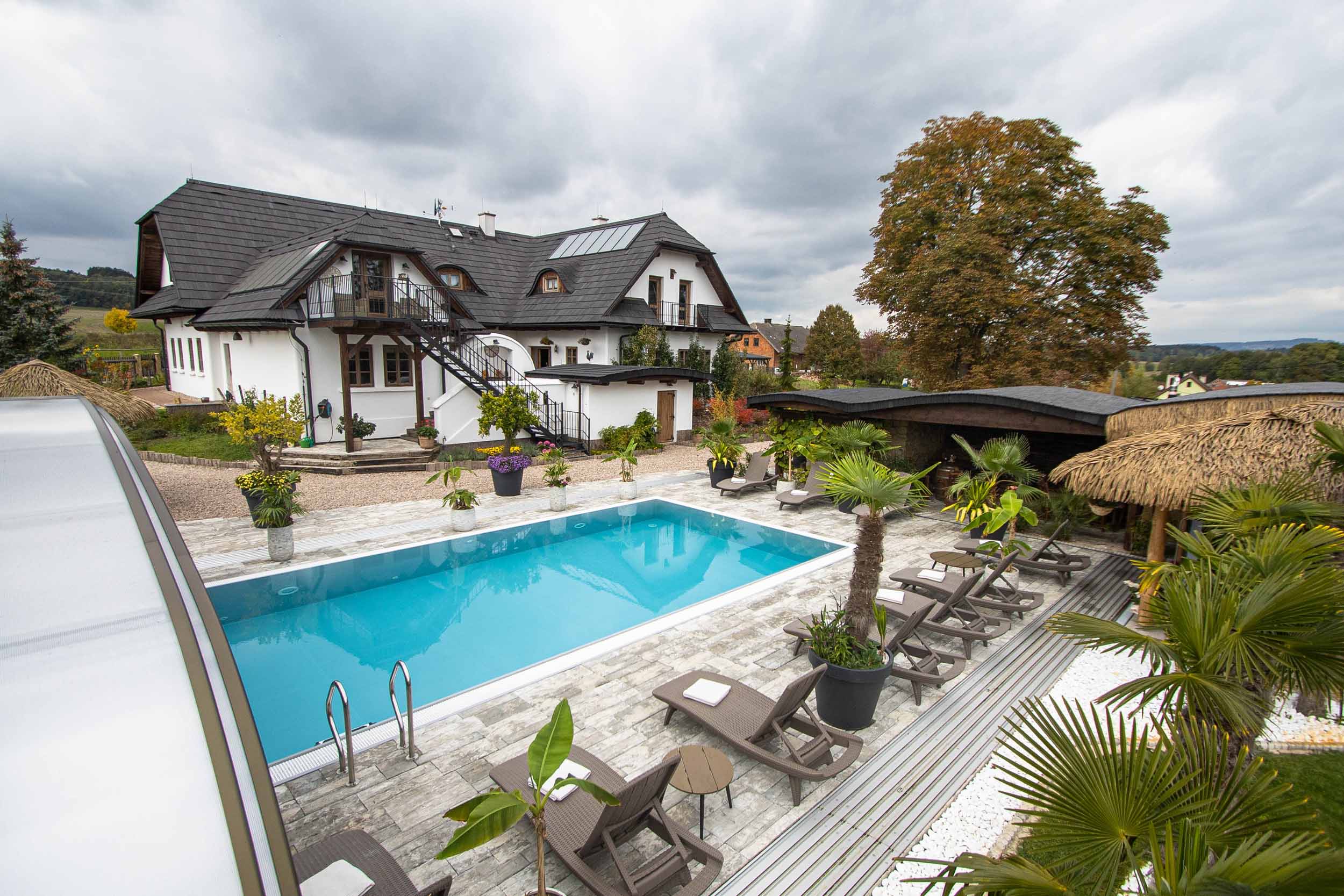 Během horkých dní je relaxace u bazénu ideální činnost. Nově můžete relaxovat u bazénu i během zimních měsíců díky zakrytí speciální střechou.