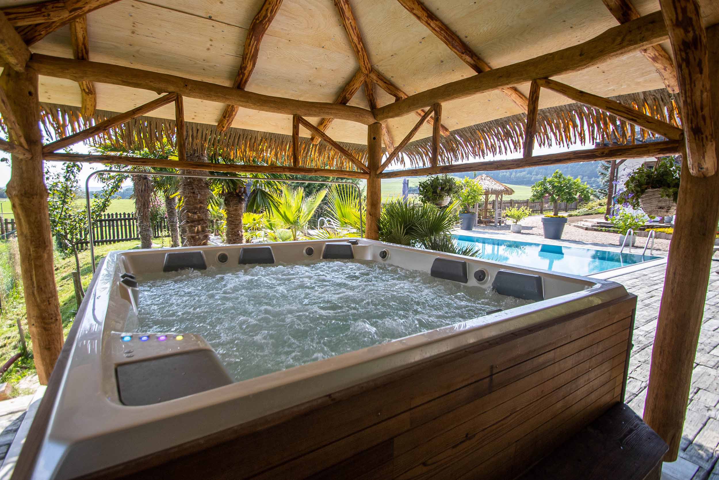 Při chladnějších večerech se můžete ohřát ve venkovním whirlpoolu či sauně, který je hned vedle bazénu.